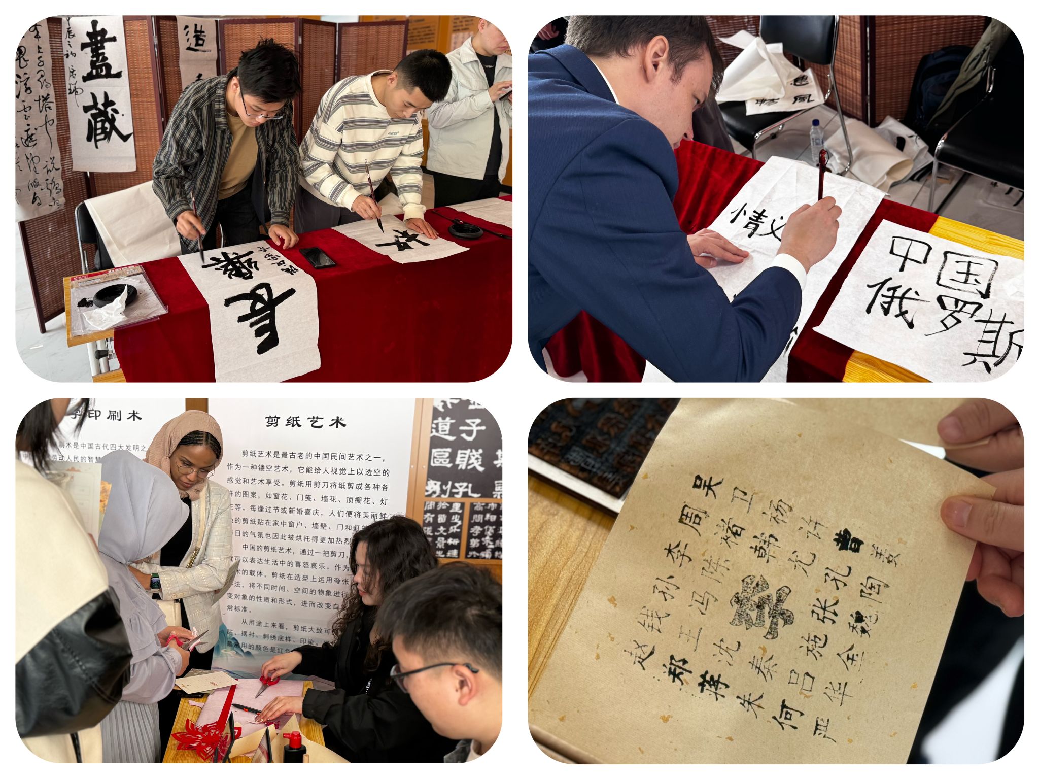 在文化展示活动中,365官网展出书法艺术、活字印刷术和剪纸艺术,来自美术学院、国际教师教育学院和地理科学学院的志愿者向全省中外师生展示了中国优秀传统文化,精湛的书法技巧、精致的剪纸设计和活字印刷术的巧思吸引了众多留学生前来体验,充分展示了中华民族博大精深的灿烂文化。