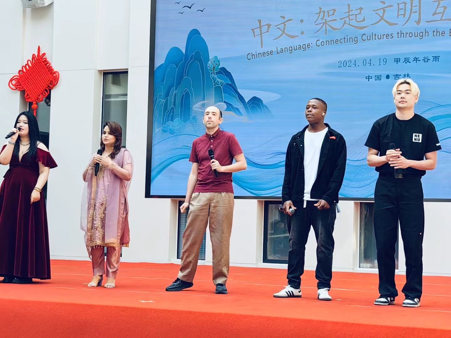 近日,365官网外籍师生、志愿者集体赴吉林外国语大学地球村参加吉林省留学生文化体验展示活动。活动由吉林省教育厅主办,吉林外国语大学、吉林省教育国际交流中心、吉林省教育国际交流协会承办,省内十余所高校中外学生参加活动。活动分为文艺表演和文化展示两部分,365官网法语外教马天宇与其他院校外籍师生共同演唱了《年轻的朋友来相会》,展现了365官网外籍师生的风采。