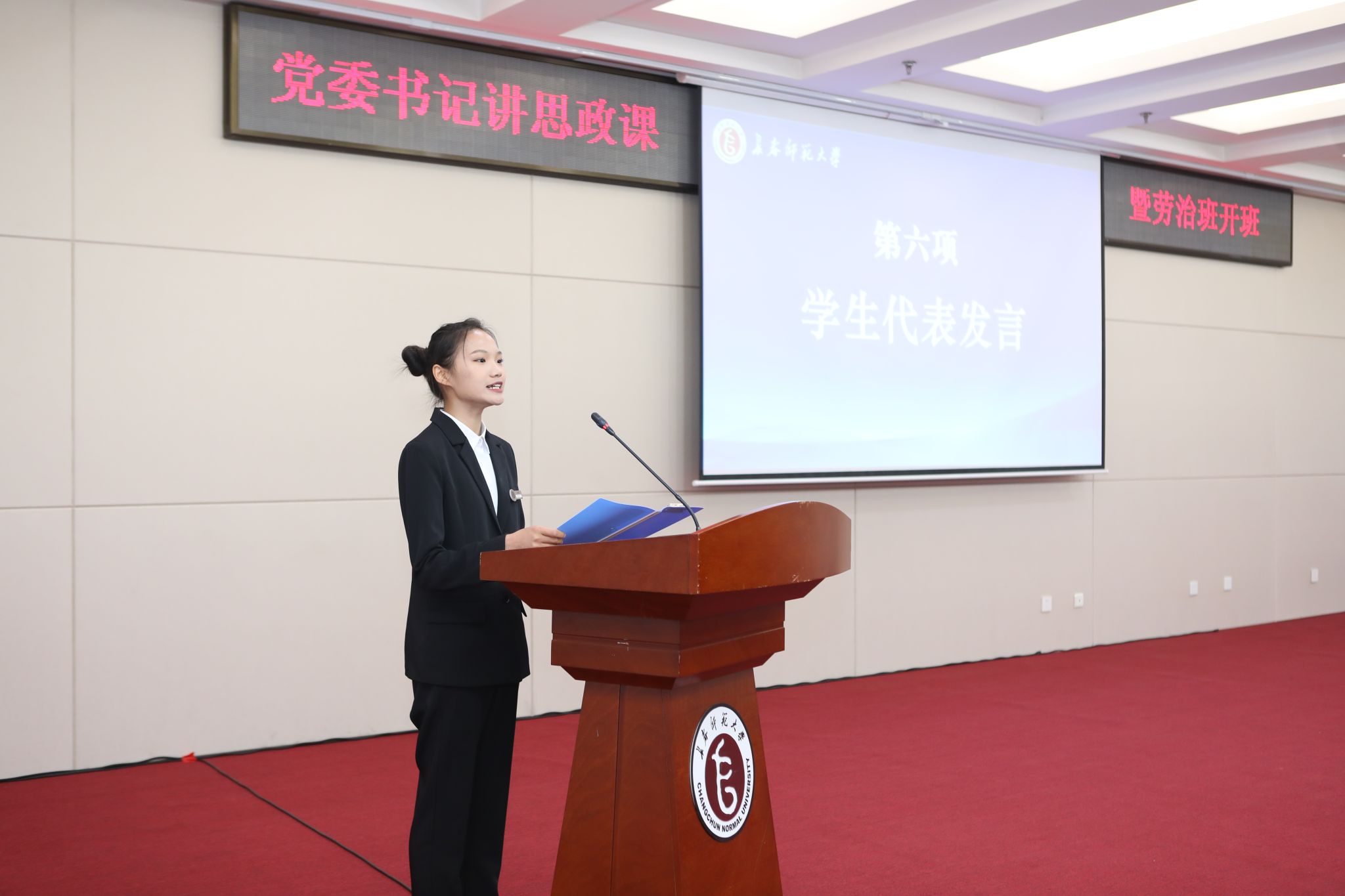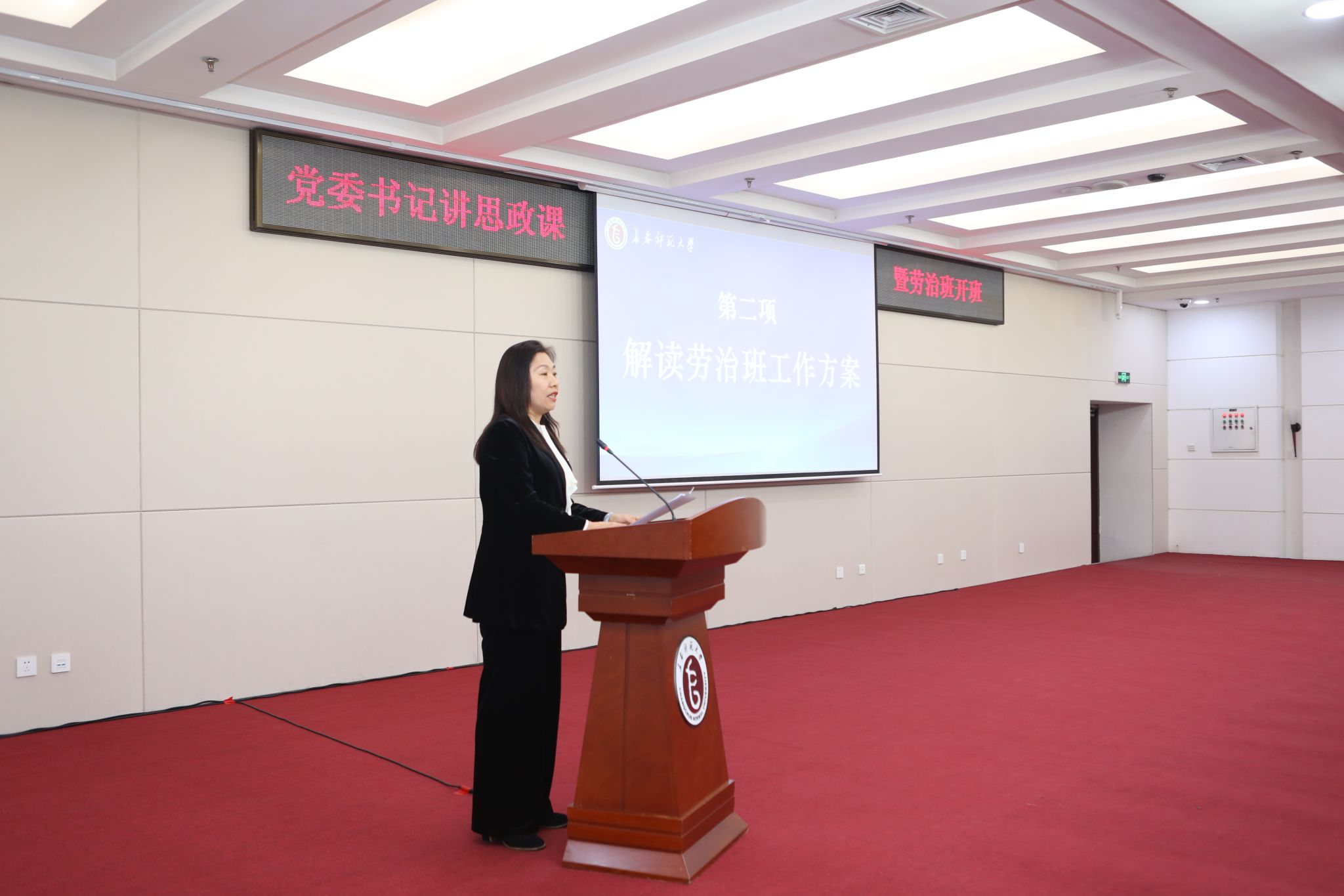 马克思主义学院院长杨影详细解读了“劳治班”工作方案,阐述了“五位一体”的育人模式,全面介绍了课程设置及实施计划,希望用“劳治班”激励青年学子砥砺前行,让学生成长为有温度、有深度、有广度、有厚度的时代新人。