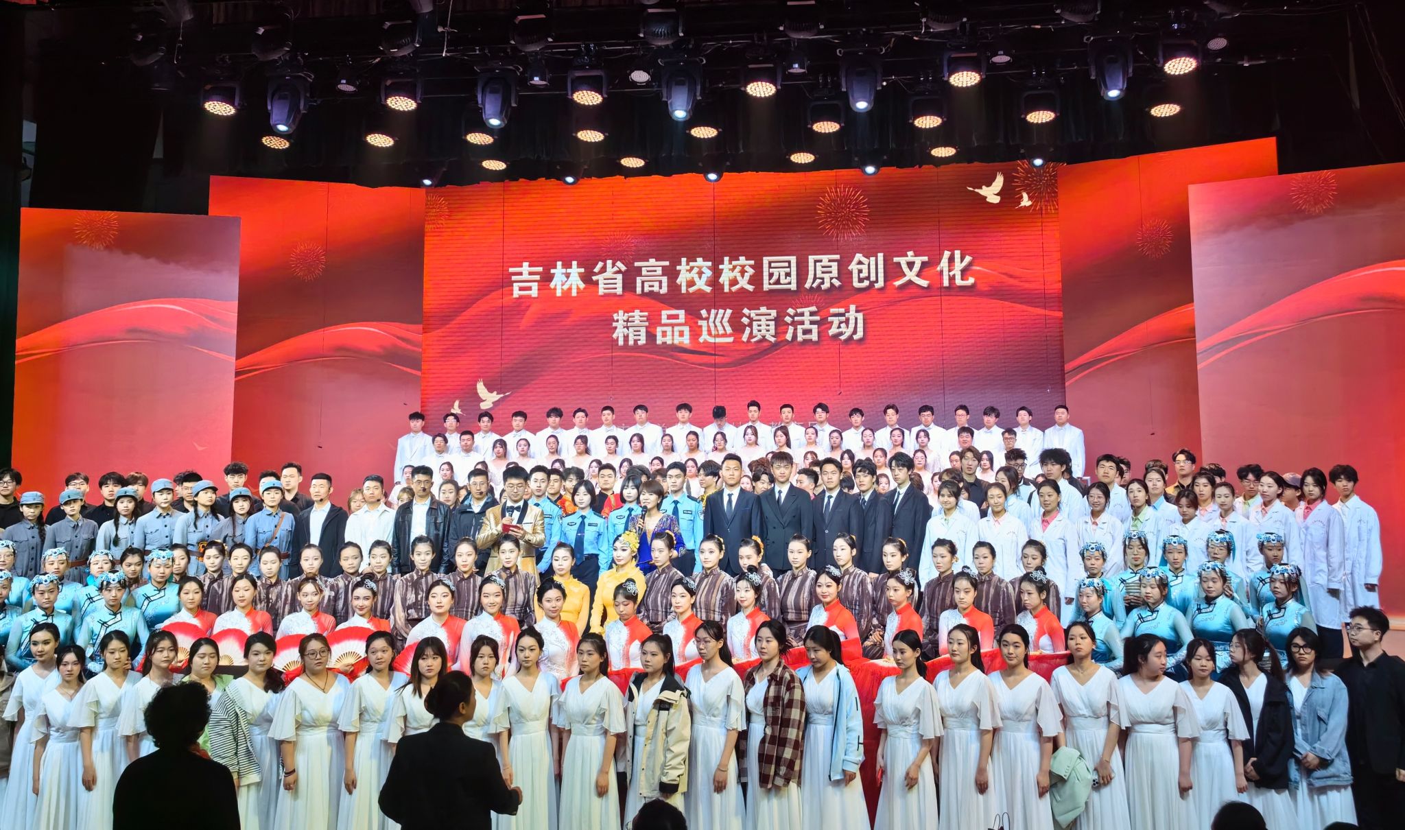 据悉,按照教育部思政司部署要求,省委教育工委于2023年底启动高校原创文化作品巡演展演工作,面向全省高校征集校园原创文化作品。共有来自全省34所高校的78部参加评选,作品类型涵盖音乐剧、合唱、舞蹈、戏曲、舞台剧、武术、朗诵等多种形式。经评审专家对所征集作品进行评选,最终遴选《少年中国说》《长白美眷(节选)》等10部作品在主题内涵、艺术诠释、舞台效果、表演技巧等方面符合巡演要求,确定参演。