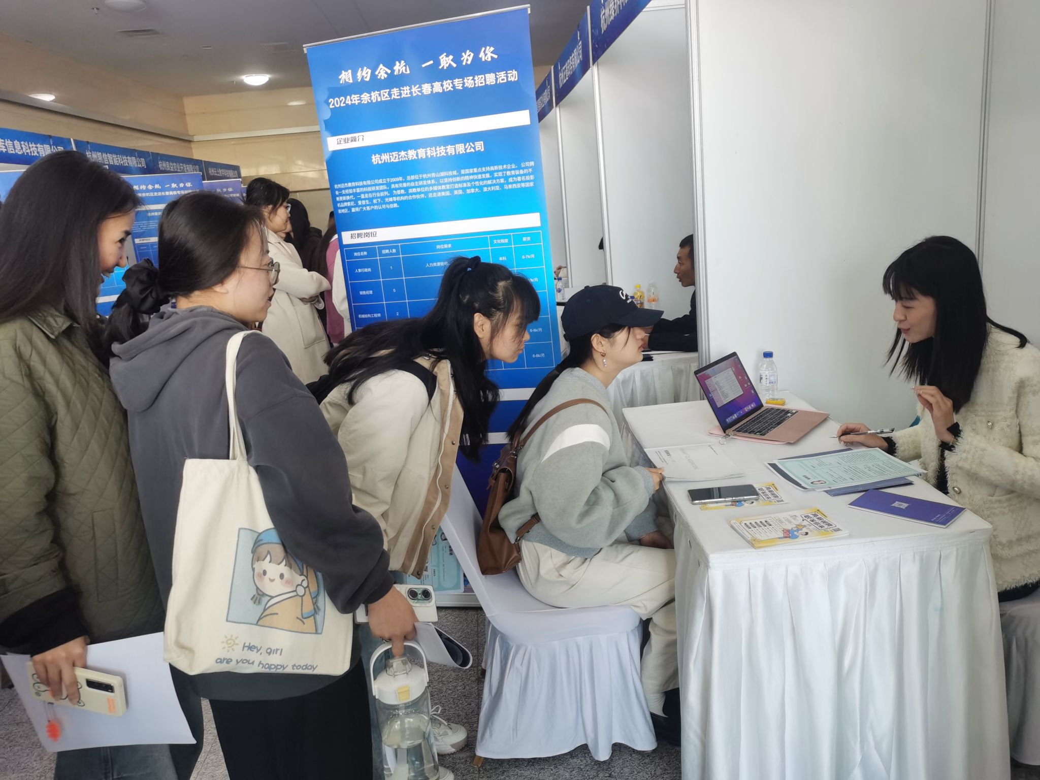 此次招聘会,吸引了杭州普晶电子科技有限公司、杭州励贝电业科技有限公司、杭州象限科技有限公司余杭分公司等21家优秀企业参加,提供300多个就业岗位,涵盖电子科技、五金工具、智能仪器、教育科技、农业开发等多个领域,为不同专业的学生提供职业选择空间。